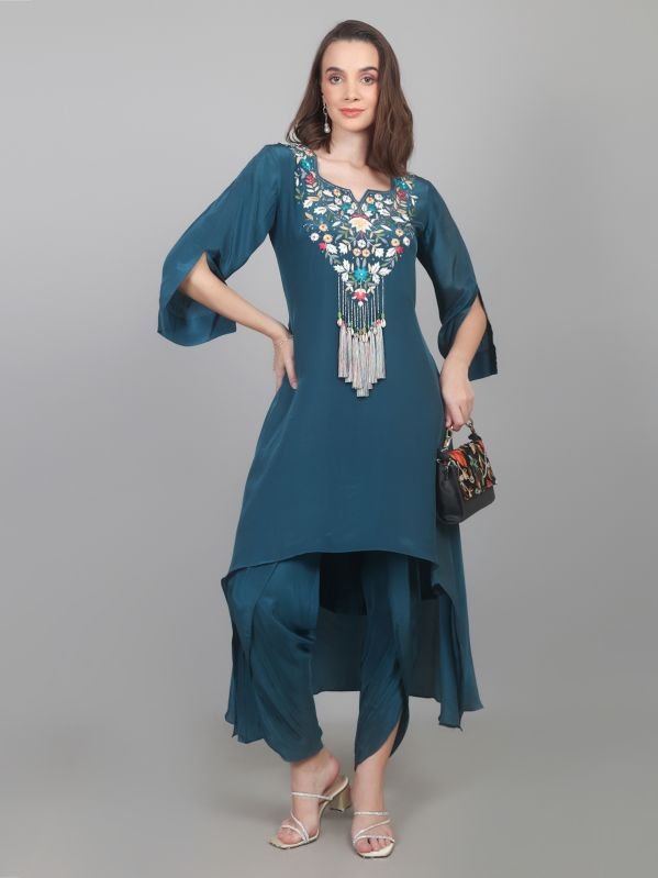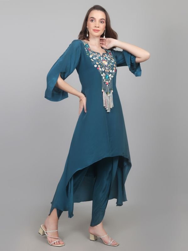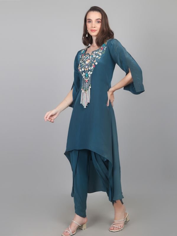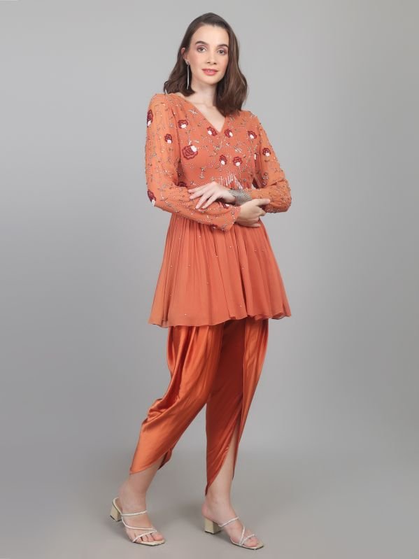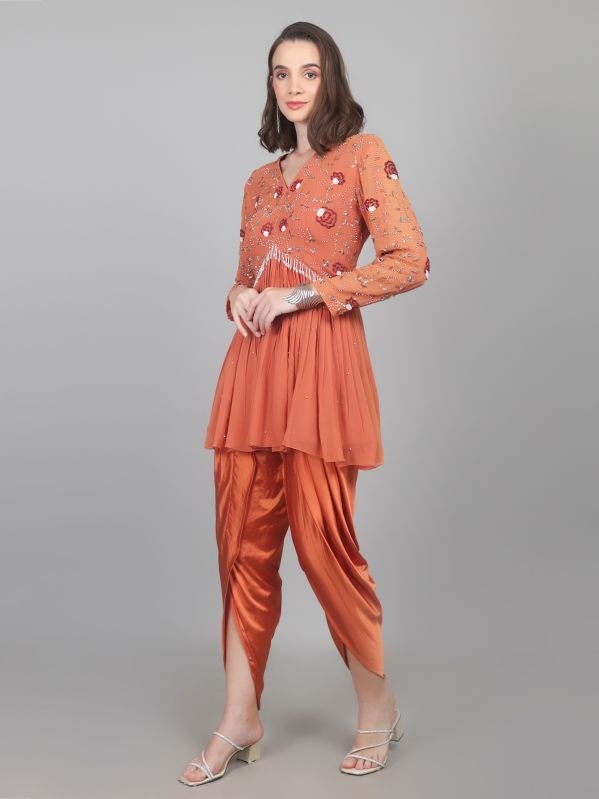 Leading Manufacturers, Exporters and Wholesaler of Women Designer Crepe Dhoti & Kurta Set and Women Peplum Work Party Wear Dhoti Kurti Set from Karnal.