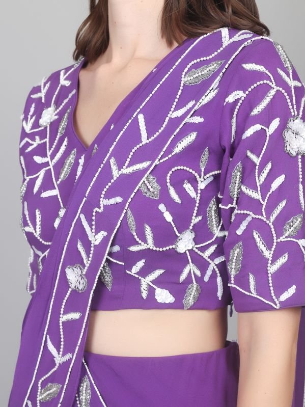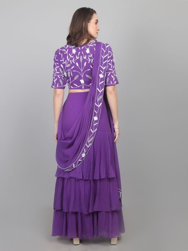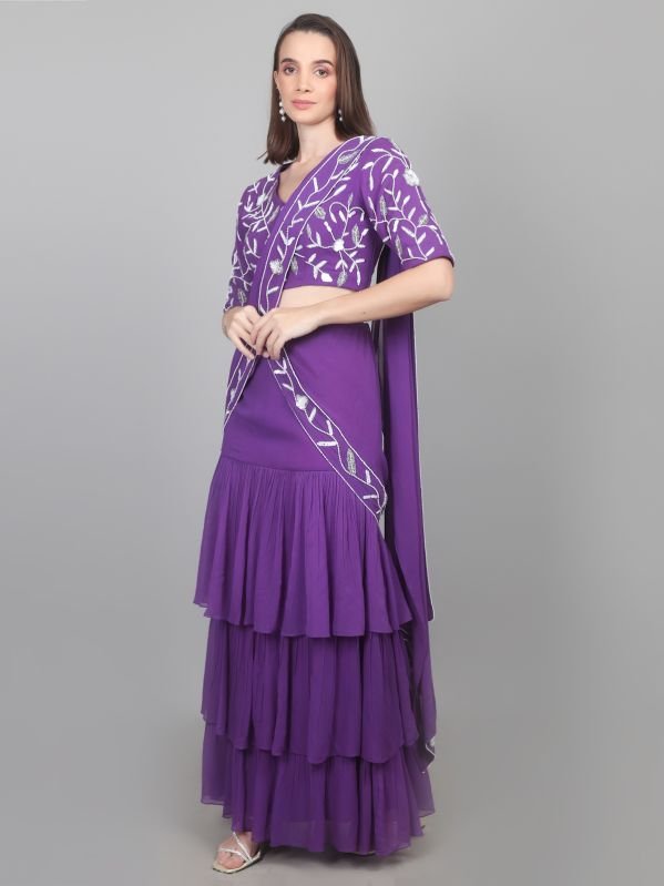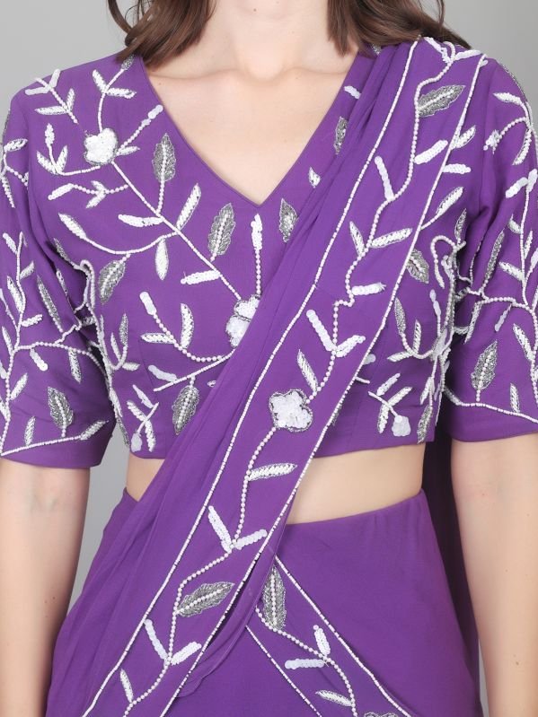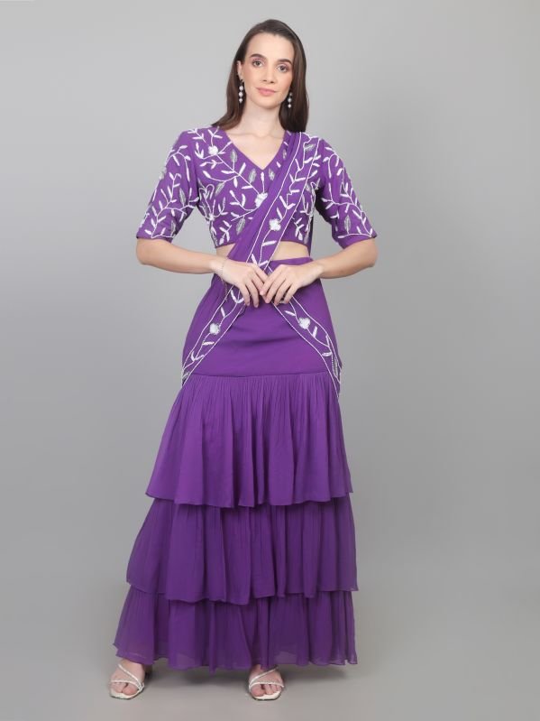 A ready to wear Saree, also know as a pre-draped or pre-stitched saree, is a Modern version of the traditional Indian Garment designed for easy wear, It eliminates the need for manual pleating and draping, as the pleats and often the pallu (the decorative end of the saree) are pre-stitched, allowing the wearer to simply slip it on like a skirt and adjust the pallu. This convenience makes it ideal for those who find traditional saree draping challenging or time-consuming.